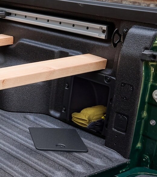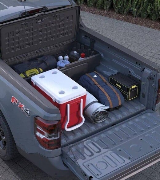 Standard on Maverick XLT and above, this flexible storage area adds even more utility to the cargo bed.* Lariat models include a second compartment on the driver's side.