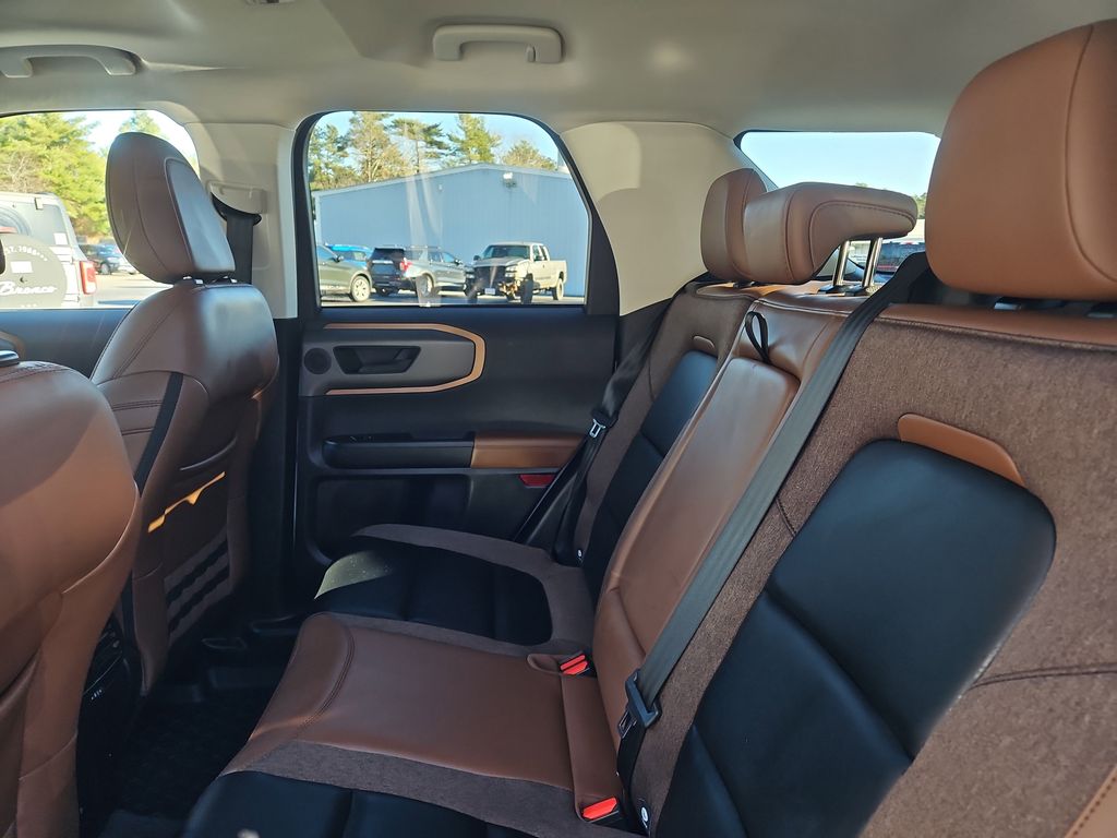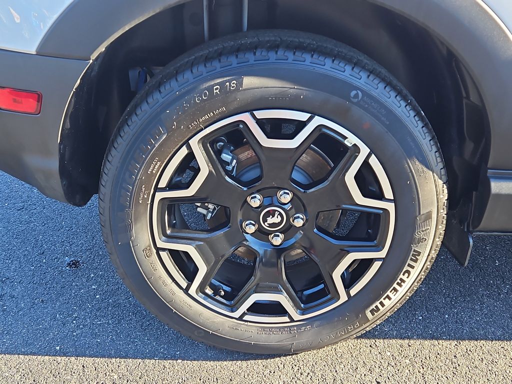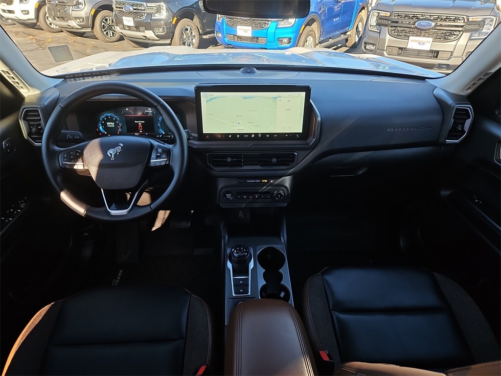 This 2025 Bronco Sport is Gorgeous with Oxford White Exterior, Ebony Roast Leather Trimmed Interior and 18" Inch Machined Faced Black Aluminum Wheels.